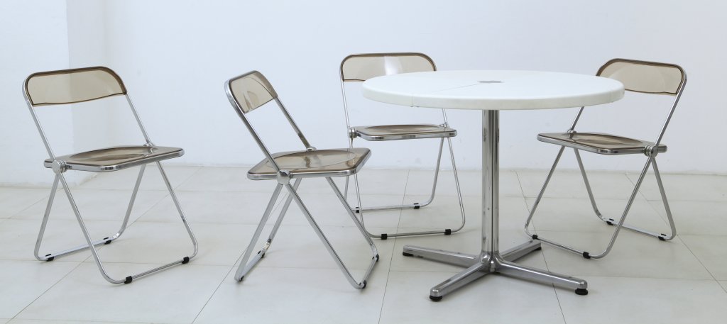 Un tavolo "Plano" (1972) e quattro sedie "Plia" (1970) per ANONIMA CASTELLI,