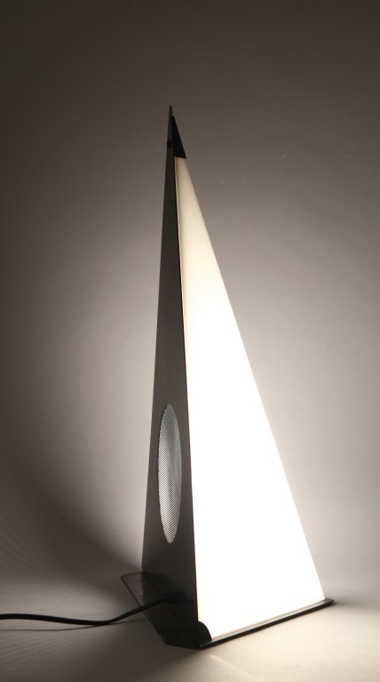 UNA LAMPADA DA TAVOLO, anni "70. Lamiera verniciata con registro traforato,...