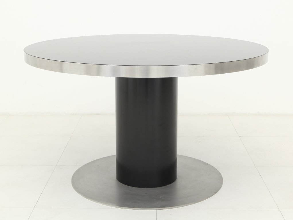 WILLY RIZZOUn tavolo, anni "70. Acciaio inossidabile satinato, laminato....