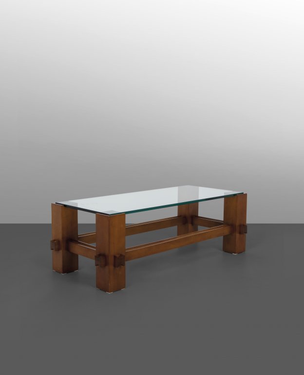 FONTANA ARTE Un tavolino modello A coffee table, "2461", anni '60. Legno di noce, cristallo. Cm 32 (h) x 95 x 42. A coffee table, "2461" model, 1960's. Solid walnut wood and crystal top. 12.6 (h) x 37.4 x 16.5 inches. Letteratura: catalogo Fontana Arte 1967, p. 380.
