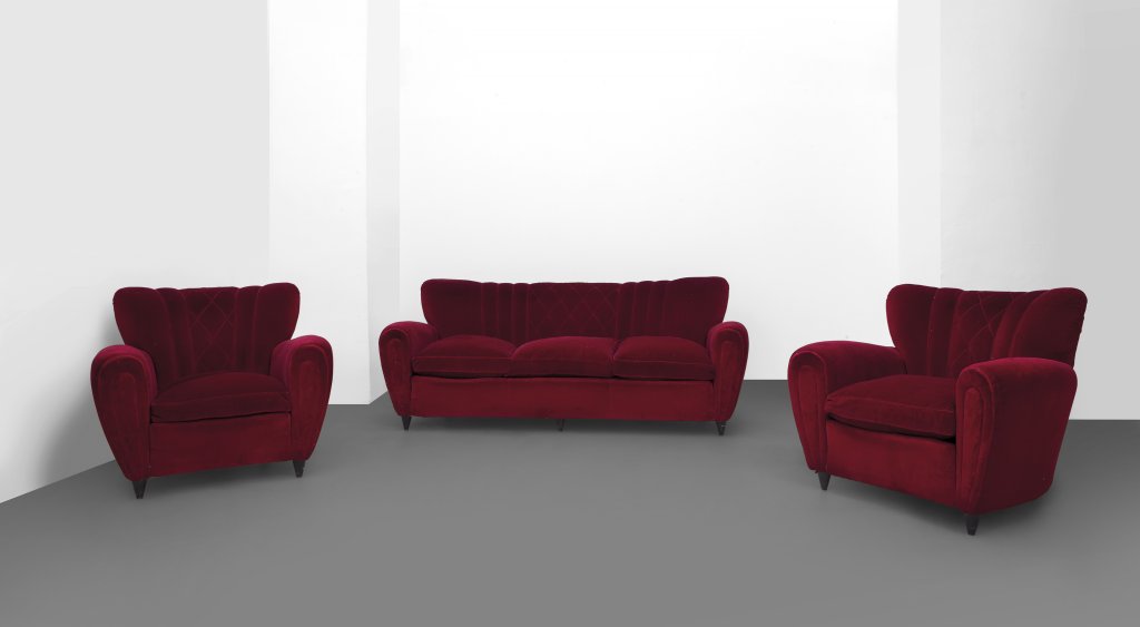 A SOFA WITH TWO ARMCHAIRS, 1940's.