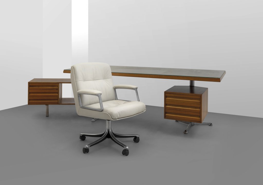 Una scrivania "T160" e una poltrona della serie "P125" per TECNO, anni '60.