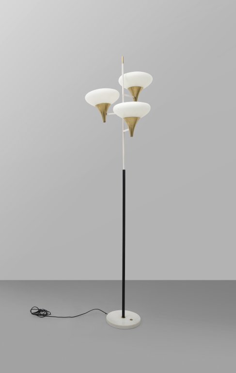 UNA LAMPADA DA TERRA, anni '50. Marmo, tubo di ferro verniciato, ottone...