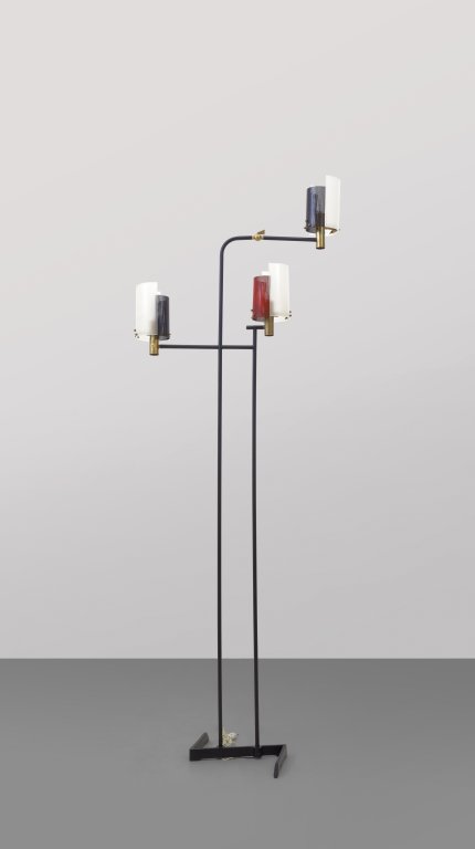 UNA LAMPADA DA TERRA, anni '60. Ferro verniciato, ottone, lamierino traforato...