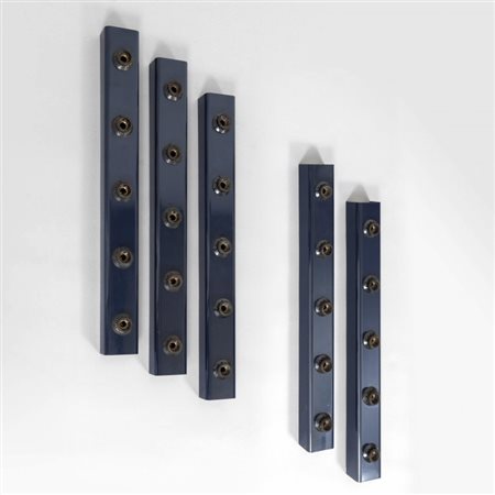 GINO SARFATTI Cinque lampade a parete "50" per ARTELUCE, 1968. Lamiera di...