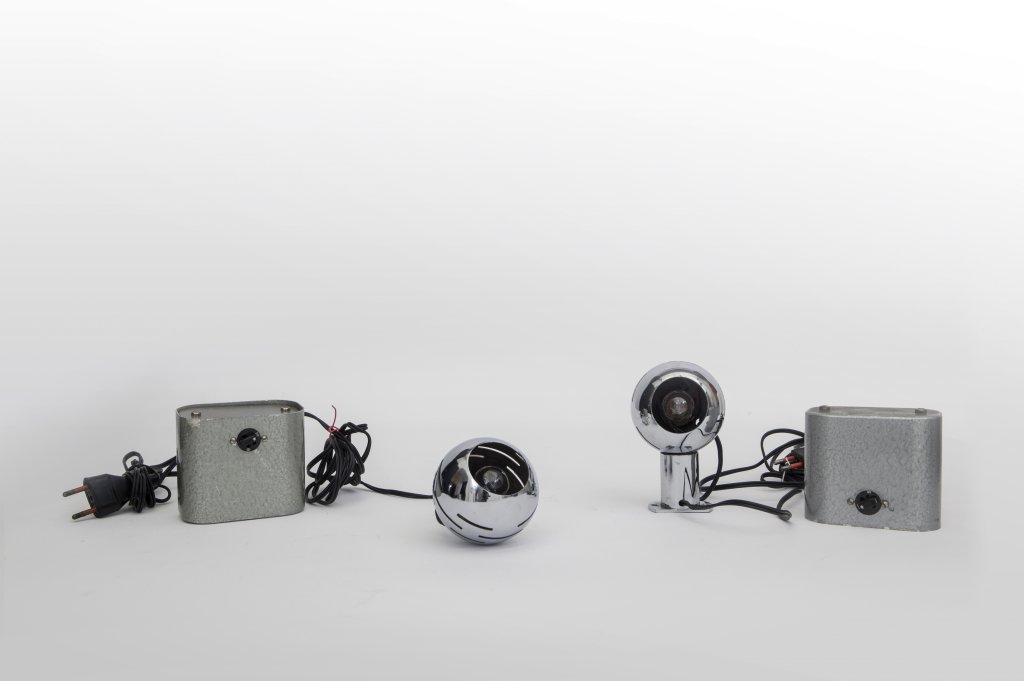 Chrome-plated steel, spherical diffusers adjustable with magnet.