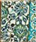 Piastrella, Damasco (Siria), XVII secolo, decorata con motivi vegetali e floreali stilizzati profilati in nero e dipinti in blu, turchese, verde e manganese. Presenta sul lato maggiore una bordura che suggerisce la sua funzione a cornice di un pannello composito, cm 19,5x23