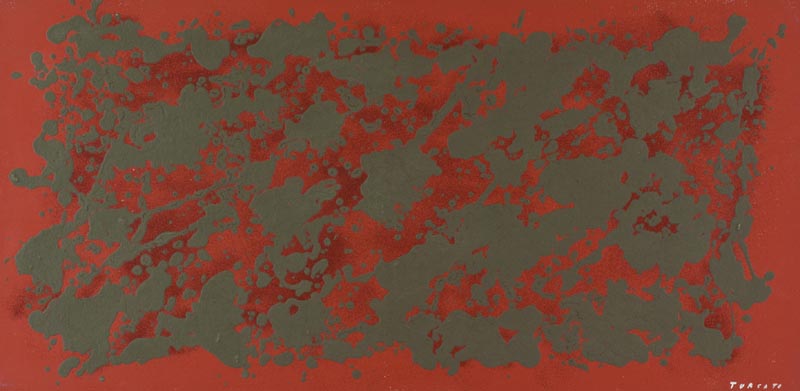 Giulio Turcato (Mantova 1912 - Roma 1995) Composizione, metà anni '80 Olio su tela, cm. 60X120 Firmato in basso a destra; Sul verso: scritto di autenticità con firma; Archivio n. BM130523ML10DB; Timbro:"Galleria d'arte Il Canale", Venezia. Autentica dell'Archivio Giulio Turcato con Repertorio n° BM130523ML10DB con timbro a secco e firma "Ettore Caruso".