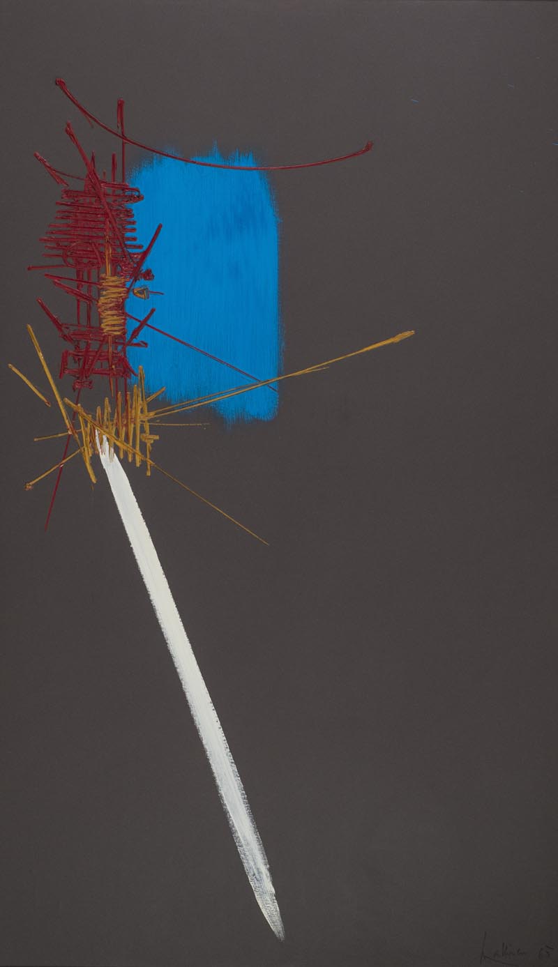 George Mathieu (Boulogne Sur Mer 1921 - 2012) Piscop, 1965 Olio su tela, cm. 162x97 Firma e data in basso a destra; Sul verso: Titolo; Etichetta: "Galerie Charpenter", Paris. Bibliografia: "Mathieu", a cura di Francois Mathey, Ediz. Fratelli Fabbri, pag. 201. Esposizione: "Galerie Charpenter", Paris, 13 Ottobre 15 Dicembre 1965, n.104 del catalogo; Pavillon Des Arts et du Design 1-5 Aprile, 2009, n.5 del catalogo. Autentica di Jean Marie Cusinberche, su foto.