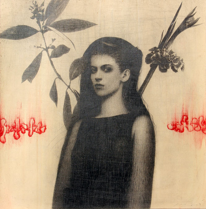 Omar GALLIANI (Montecchio Emilia (Re) 1954-) Senza titolo, tecnica mista su tavola, cm. 50 x 50, Firma 'Galliani' (in basso a destra) Autentica dell'artista su fotografia