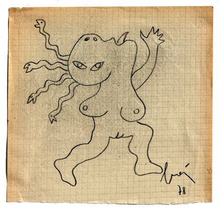 Enrico BAJ (Milano 1924-Vergiate 2003) Senza titolo, 1978, grafite su carta, cm. 14 x 14, Firma, data 'Baj, 78' (in basso a destra) #Etichetta della Galleria d'arte Alberto Valerio, Brescia (al retro)