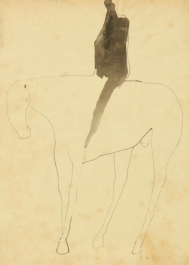 Marino MARINI (Pistoia 1901-Viareggio 1980) Cavaliere, 1955, china su carta, cm. 35 x 24.5, 'Disegno italiano del Novecento', Banco Ambrosiano Veneto, Milano, 1992 - copertina, Firma 'Marino' (in basso a destra)