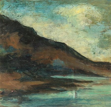 Carlo CARRA' (Quargnento 1881-Milano 1966) Paesaggio, 1926, olio su tavola, cm. 12.8 x 12.8, Firma, data 'Carrà, 926'; #timbro della Galleria del Naviglio, Milano (al retro) Autentica a cura di Massimo Carrà