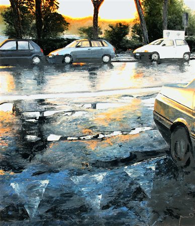 Davide FRISONI (Rimini 1965-) Tramonto, 2001, olio su tela, cm. 120 x 140,...