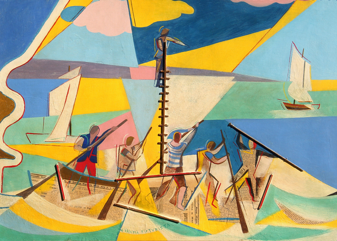 Giulio D'ANNA (Villarosa 1908-Messina 1978) Pesca al pesce spada, 1933, olio e tecnica mista su tavola, cm. 49 x 69, Firma 'G. D'Anna futurista' (in basso al centro) Autentica dell'Archivio Storico Futuristi Siciliani, Diomedea Arte, Palermo