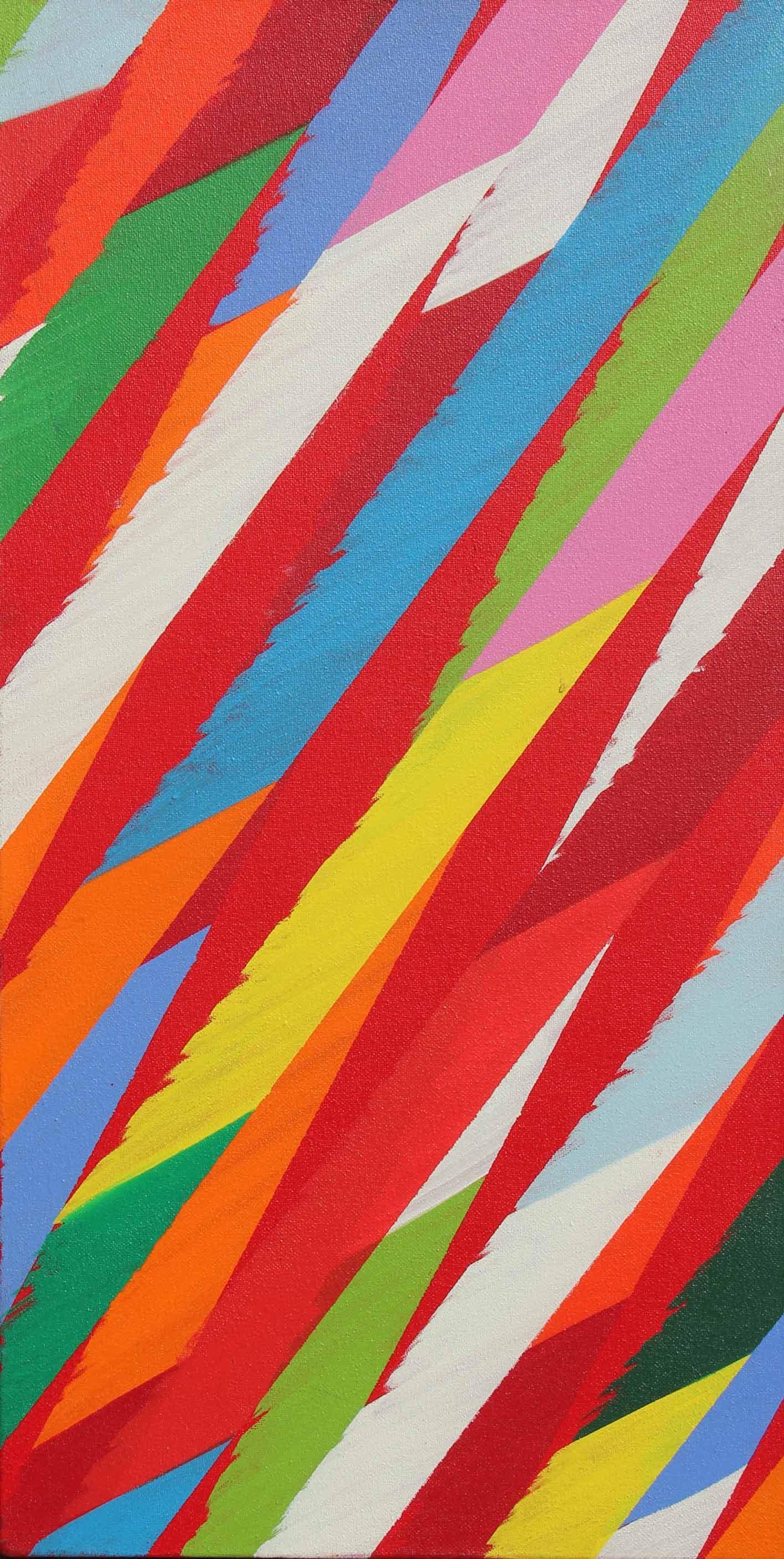 Piero DORAZIO (Roma 1927-Todi 2005) Agonas II, 2001, olio su tela, cm. 70 x 35, Firma, data, titolo 'Piero Dorazio, MMI, Agonas II'; #timbro dello Studio Piero Dorazio (al retro) Autentica dell'artista su fotografia, con timbro dello Studio Piero Dorazio