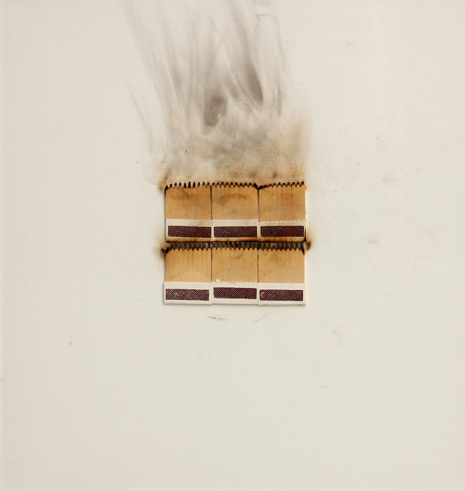 Bernard AUBERTIN (Fontenay-aux-Roses 1934-Reutlingen, 2015) Dessin de feu, 2010, fiammiferi bruciati su tela, cm. 41 x 41, Firma, data 'Bernard Aubertin, 2010' (al retro) Autentica dell'artista su fotografia #Autentica dell'Archivio Generale delle Opere di Bernard Aubertin, Galleria Rosenberg, con n. DEF-1000001211RSN