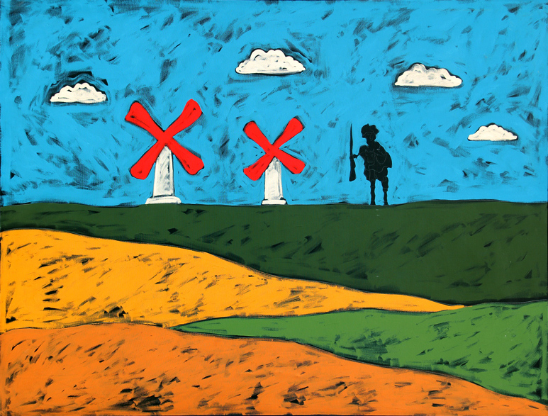 Tano FESTA (Roma 1938-Roma 1988) Don Chisciotte, anni 80, acrilico su tela, cm. 125 x 165, Firma 'Festa' (al retro) Autentica dell'Archivio Tano Festa a cura di Studio Soligo con numero 80080/979C