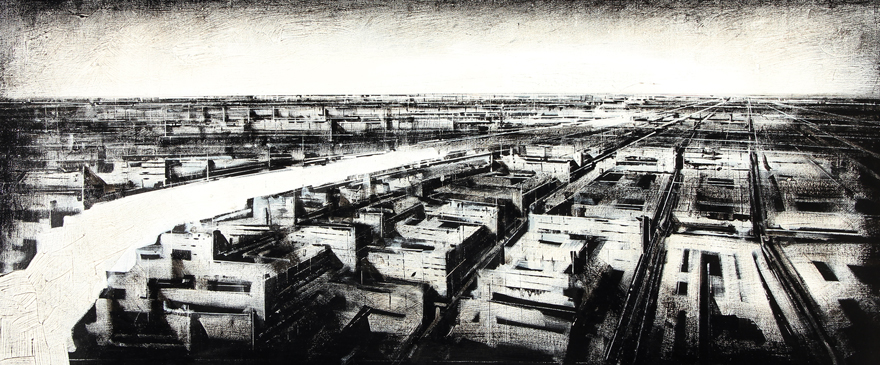 Jonathan GUAITAMACCHI (Londra 1961-) London, 2002, olio su tela, cm. 45 x 110, Firma, data, titolo 'Jonathan Guaitamacchi, 2002, London' (al retro) Autentica dell'artista su fotografia