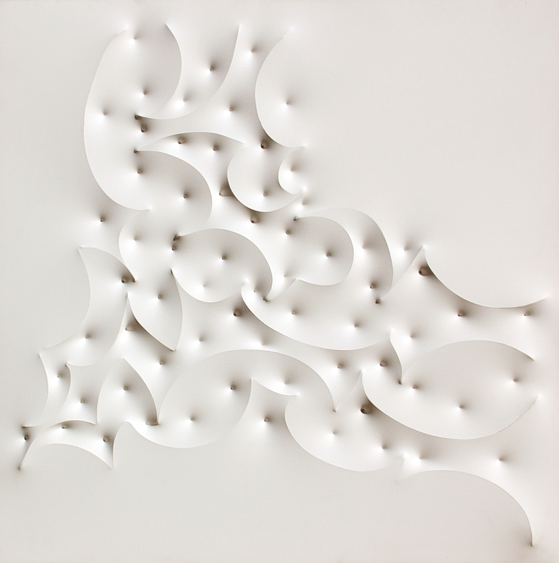 Giuseppe AMADIO (Todi 1944-) Acona, acrilico su tela estroflessa, cm. 98.5 x 98.5, Firma, titolo 'Amadio, Acona' (al retro) Autentica dell'artista su fotografia