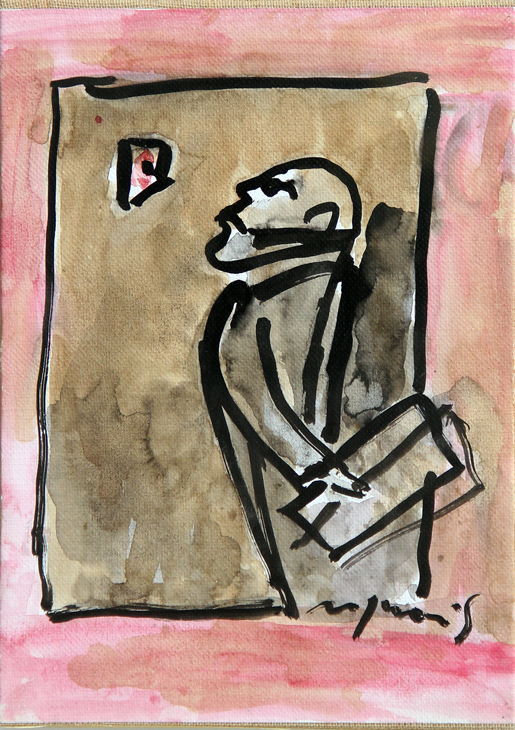 Franco ROGNONI (Milano 1913-Milano 1999) Il critico d'arte, acquarello su carta applicata su tela, cm. 30 x 20, Firma 'Rognoni F' (in basso a destra) Autentica a cura della moglie Mariuccia Noè Rognoni