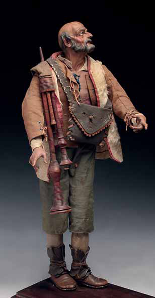 Zampognaro mirante a destra gli occhi rivolti in alto secondo il prototipo...