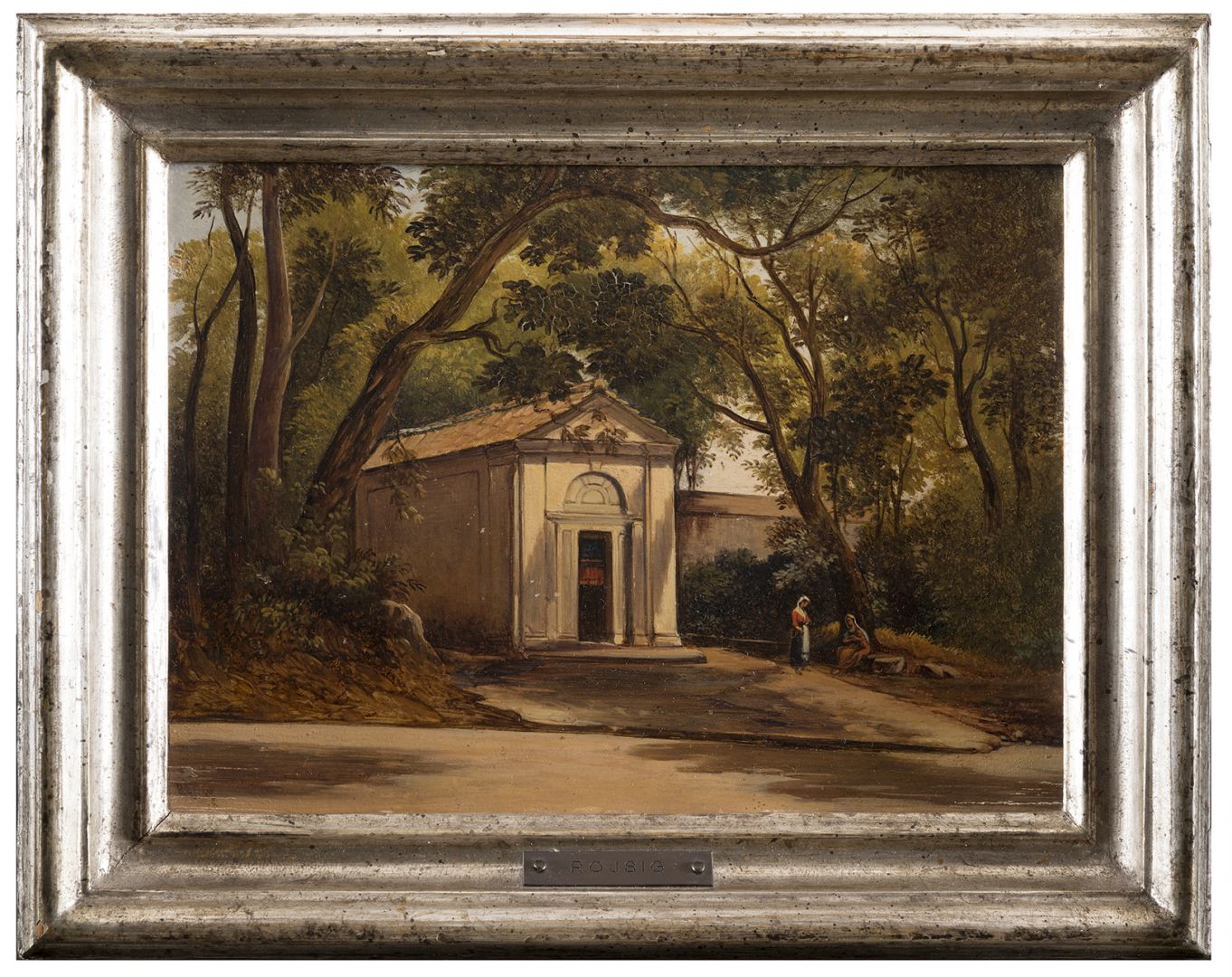 PITTORE NORD EUROPERO XIX SECOLO Paesaggio con chiesetta Olio su tavoletta cm...