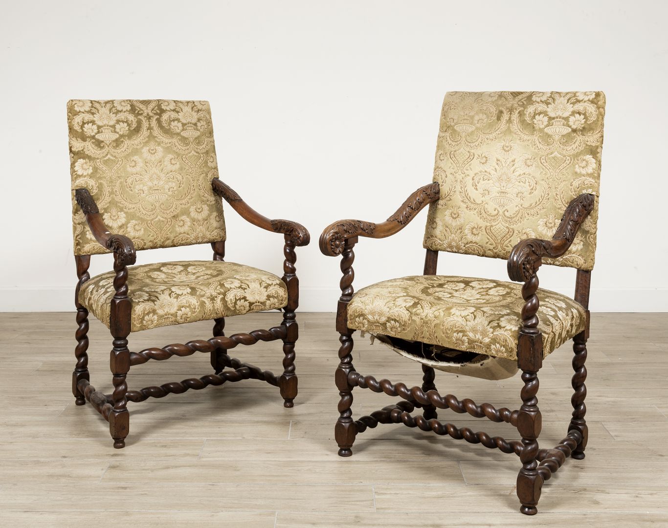 Lotto 42 | COPPIA SEGGIOLONI XVIII SECOLO In mogano con struttura ad elementi a torchon...