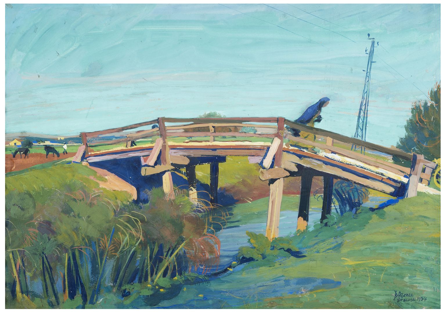 BEPPE ASSENZA Modica 1905 - Dornach 1985 Fiume Aretuso 1934 Tempera su carta...
