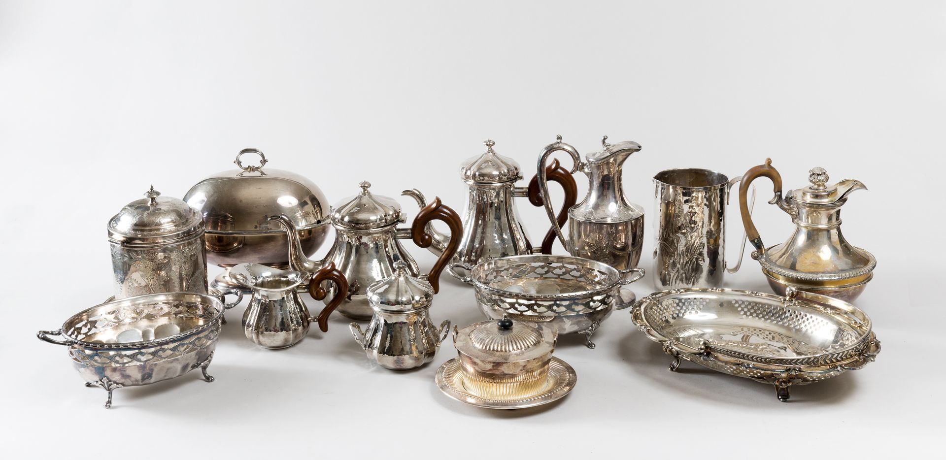 LOTTO DI OGGETTI IN METALLO ARGENTATO Comprendente servizio da the con...