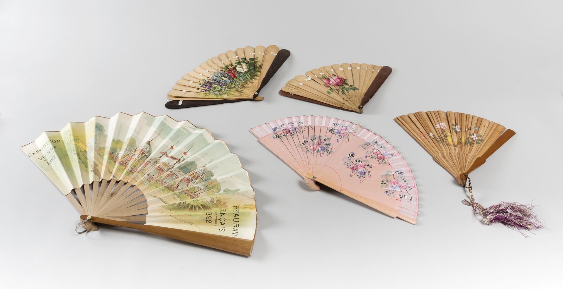SETTE VENTAGLI Vari in carta,tulle e legno Dipinti a mano, fine ottocento