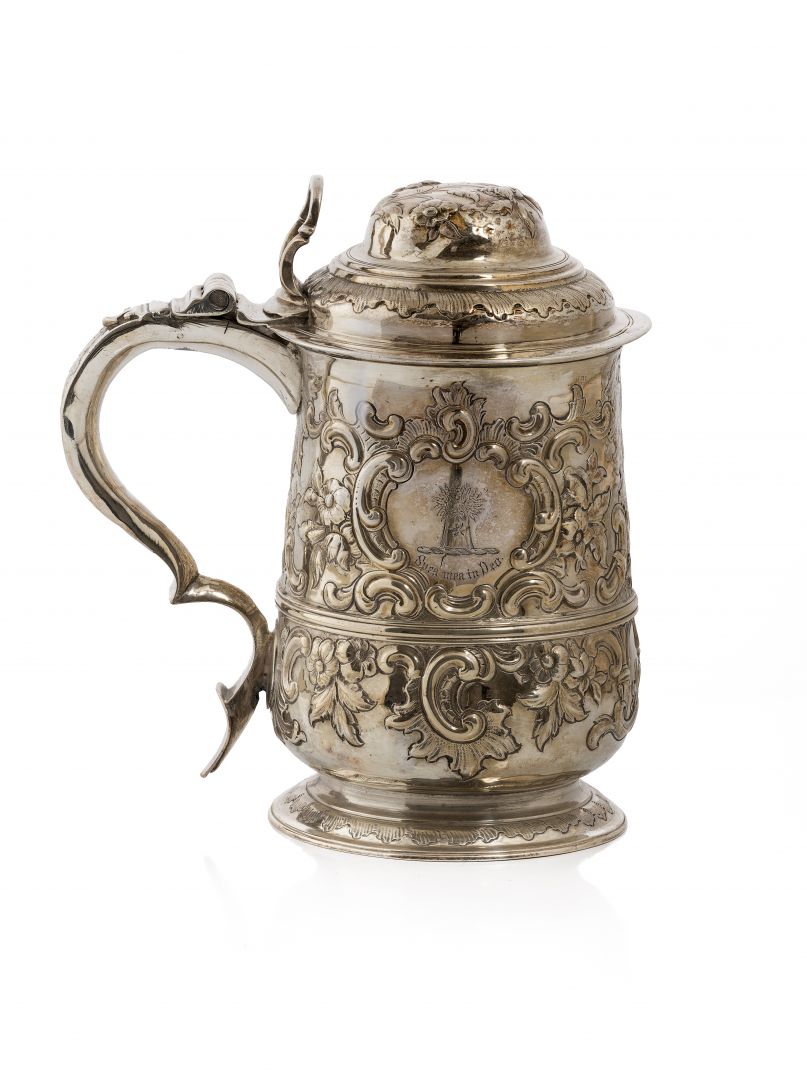 RARO TANKARD IN ARGENTO Sbalzato e cesellato con decoro a rocailles e fioriÂ...