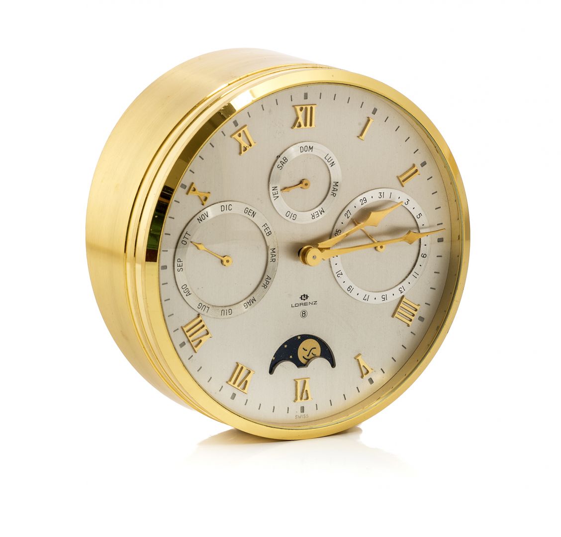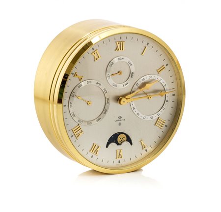 OROLOGIO DA TAVOLO LORENZ In bronzo dorato con calendario dei giorni mesi...