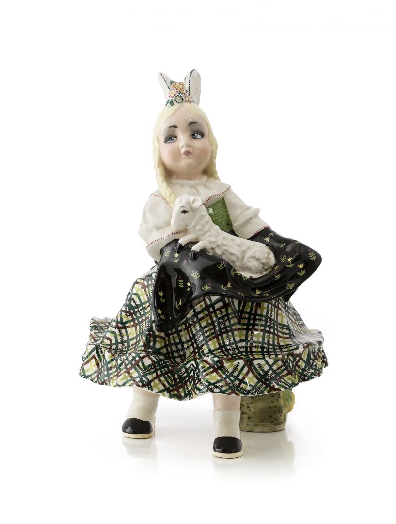 Lotto 176 | SANDRO VACCHETTI ESSEVI TORINO Bimba con pecorella, in ceramica lucida...