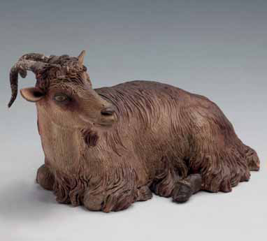 Capra bianco e marrone, testa a sinistra, arti anteriori ciascuno a ciascun lato sporgenti dal pellame, arti posteriori raggruppati a destra, movimento singolare di Francesco Gallo (prov. collezione Scuotto). cm 7x10; fine secolo XVIII
