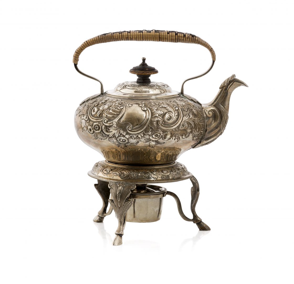 SAMOVAR IN ARGENTO completamente sbalzato con decoro di fiori e ramage e...