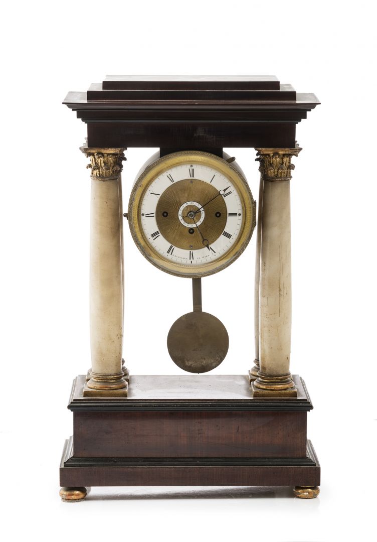 OROLOGIO DA TAVOLO KAUFMANN WIEN A tempietto in legno placcato in mogano con...