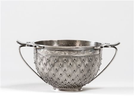 COPPETTA RUSSA PER CAVIALE In argento inciso cesellato con decoro di foglie...