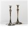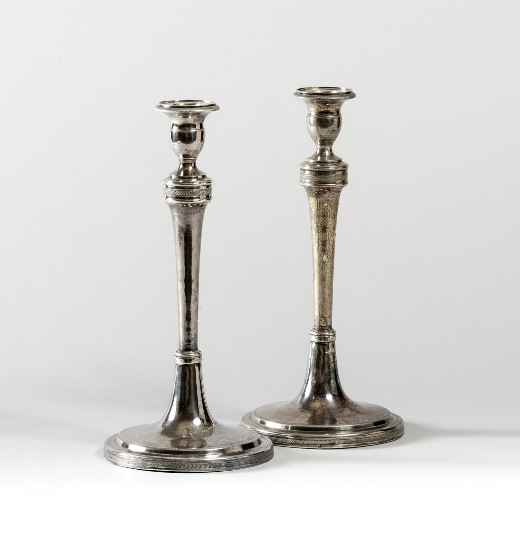 DUE CANDELIERI IN ARGENTO fusto conico terminante con base circolare punzone...