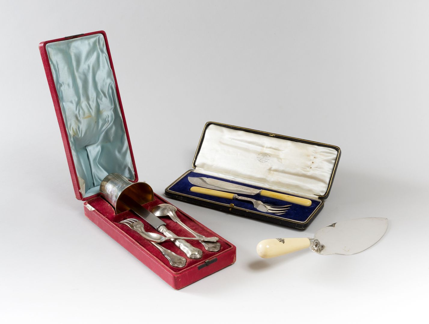Due posate da portata manico in avorio in custodia