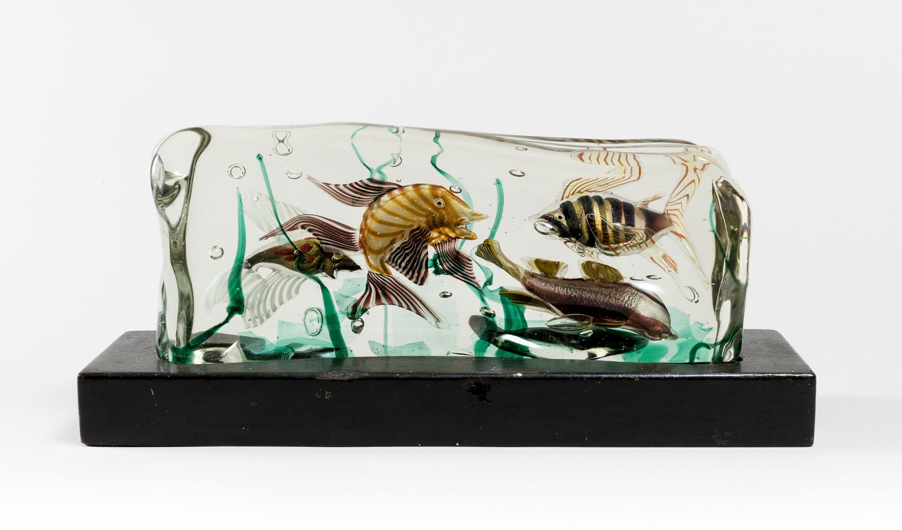 Acquario scultura in vetro con inclusioni di Murano 1950