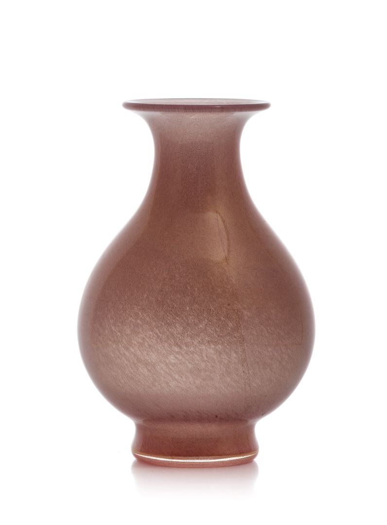 VASO BAROVIER & TOSO in vetro rosa a forma di goccia con inserti a foglia oro...