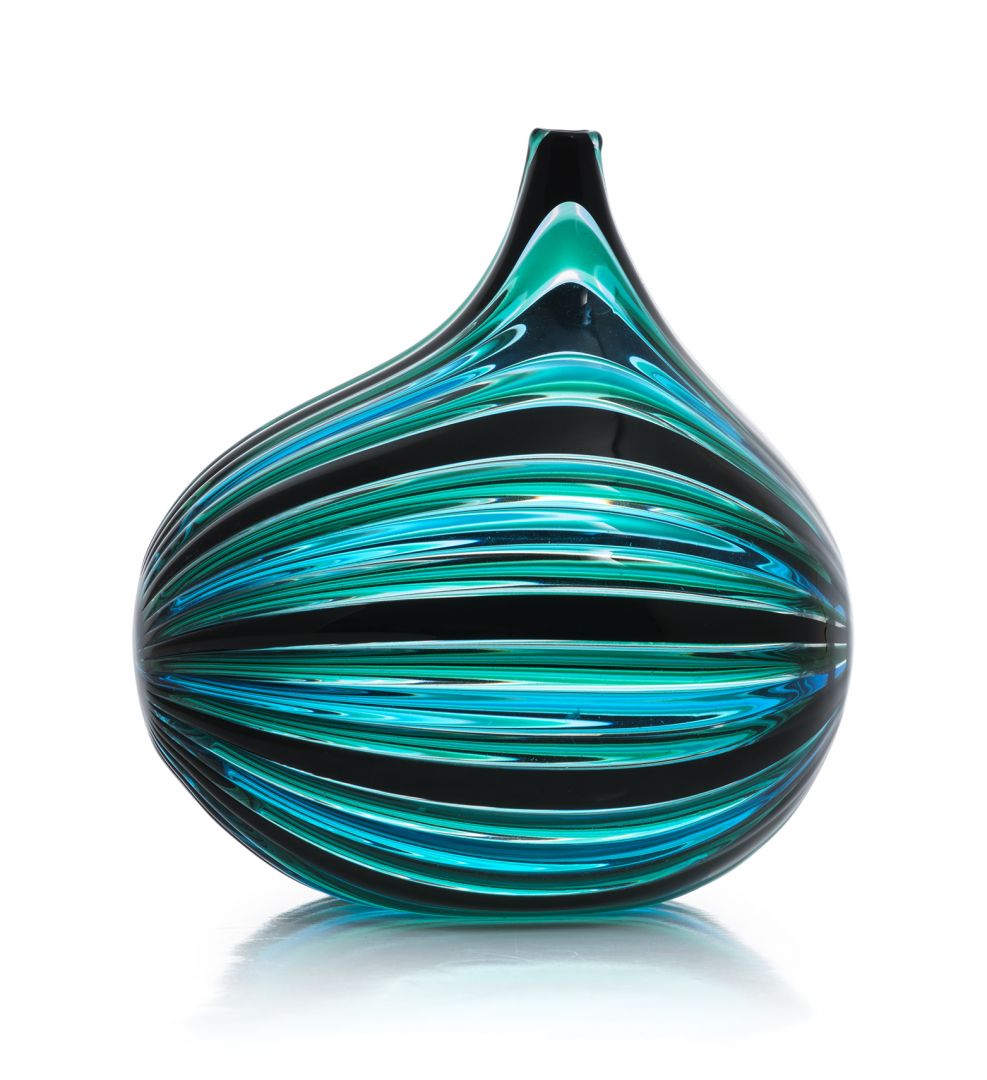 SOLIFLEUR IN VETRO VEART VENEZIA a canne verdi e blu Firma sotto la base cm...