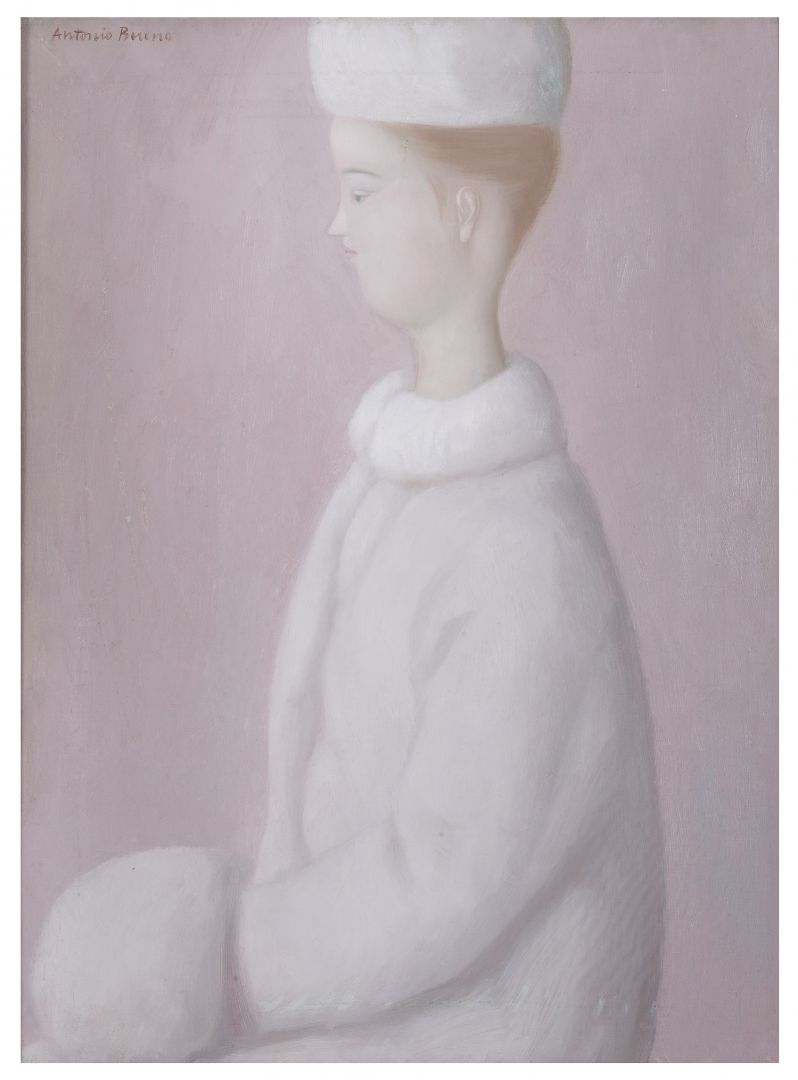 ANTONIO BUENO Berlino 1918 - Fiesole 1984 Donna con cappello bianco 1960 Olio...