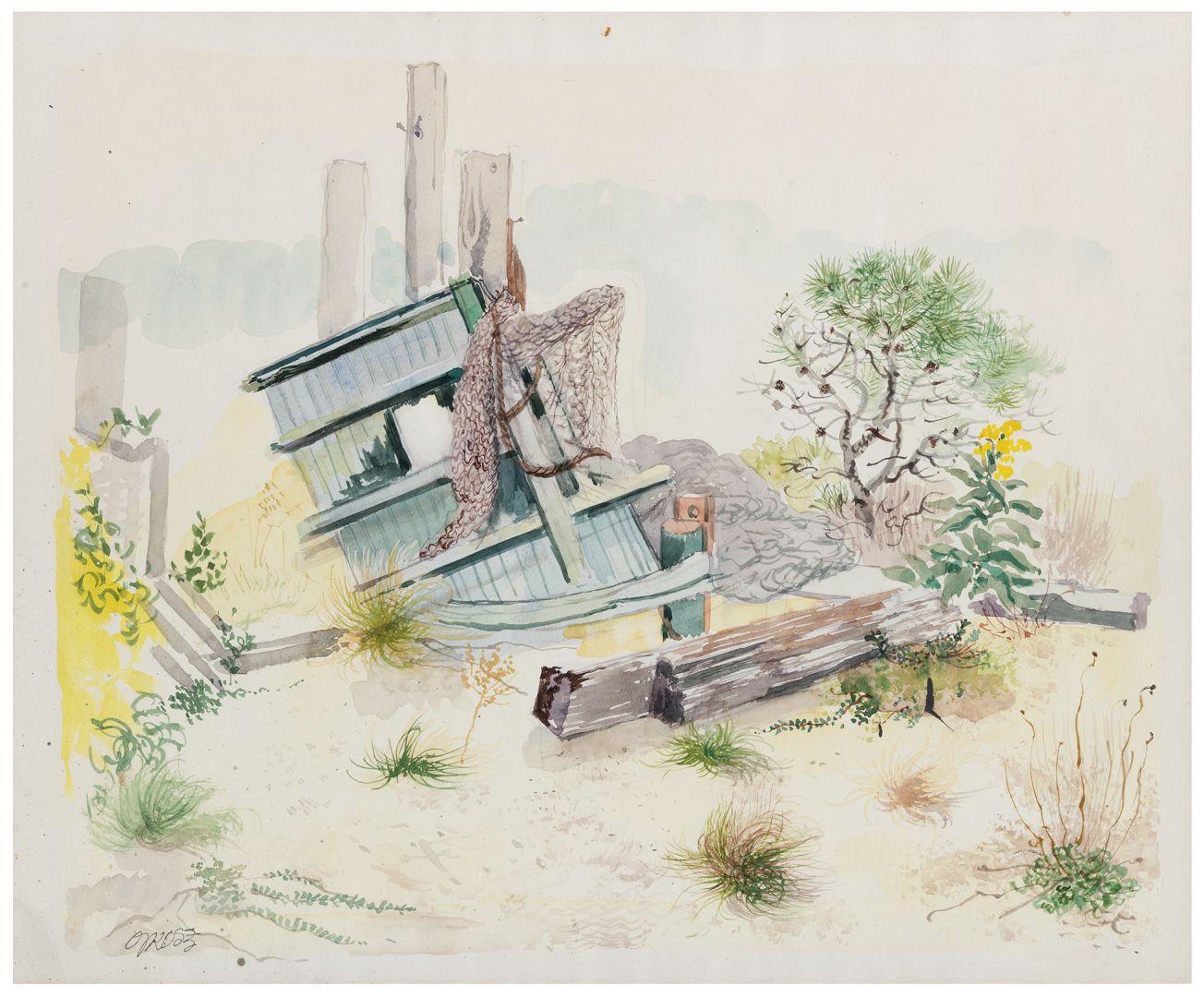 GEORGE GROSZ Berlino 1893 - 1959 Marinscape Cape cod boat wrecke 1940...