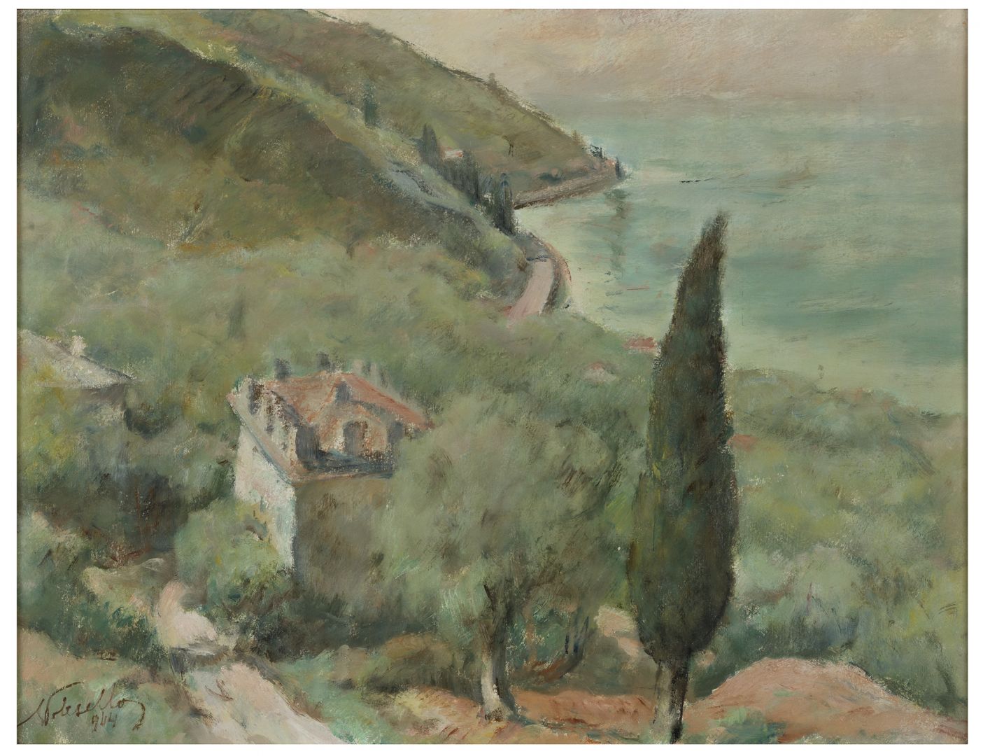 EUGENIO POLESELLO Pordenone 1895 - 1983 Lago di Como 1944 Olio su tela cm 50...