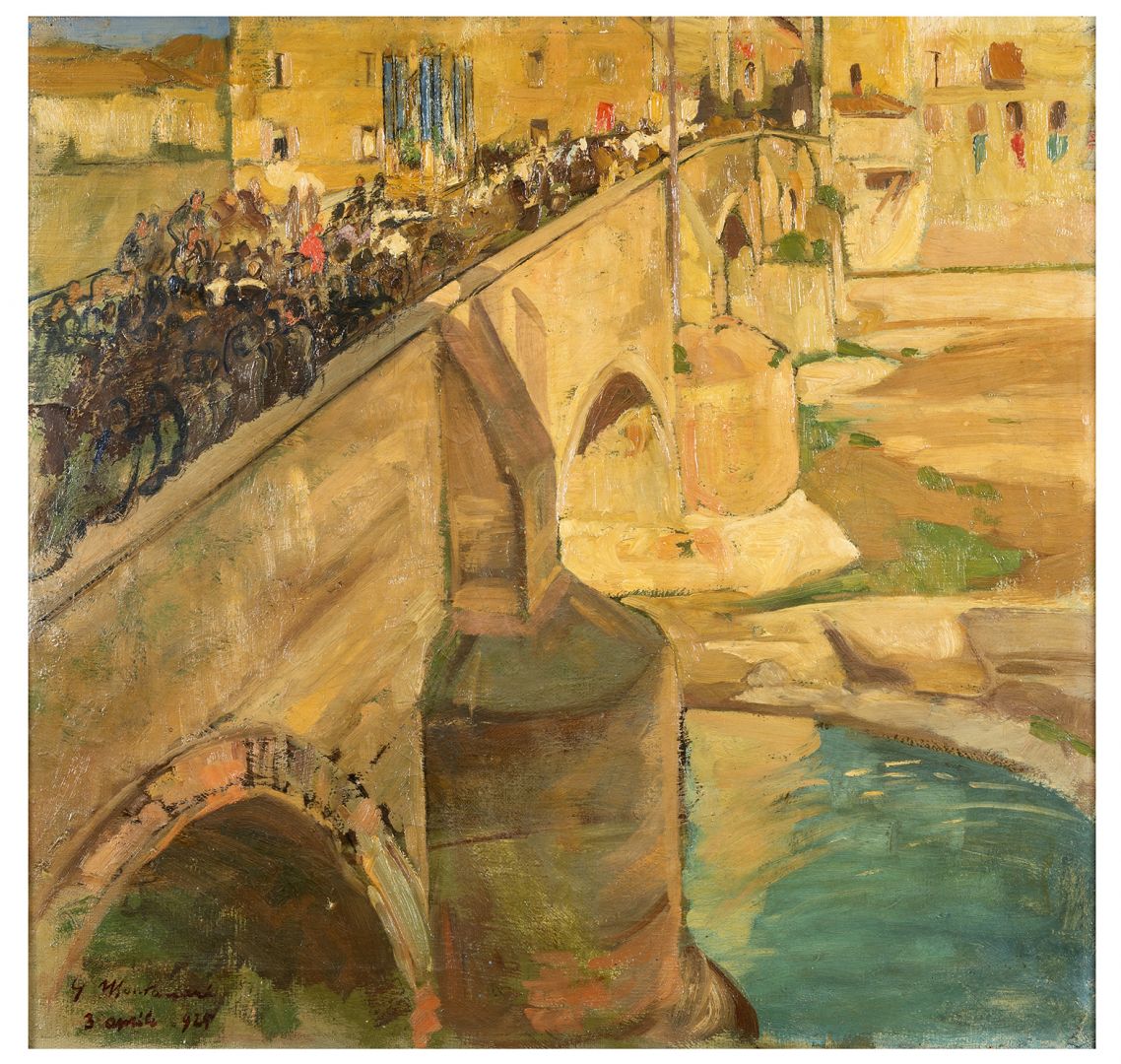 GIUSEPPE MONTANARI Osimo 1889 - Varese 1976 Ponte con figure 1925 Olio su...