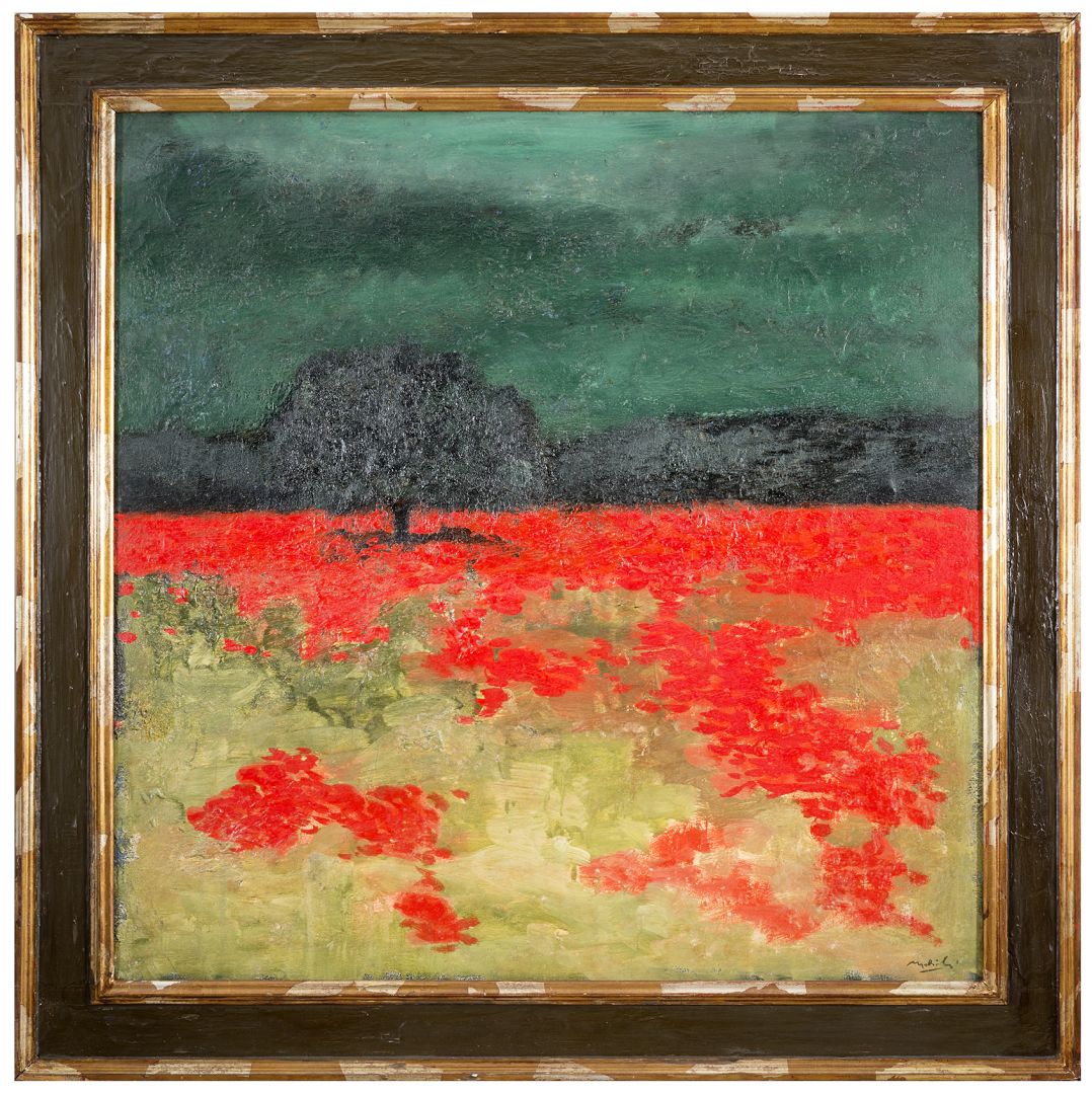 CARLO MATTIOLI Modena 1911 - Parma 1994 Albero e papaveri 1974 Olio su tela...