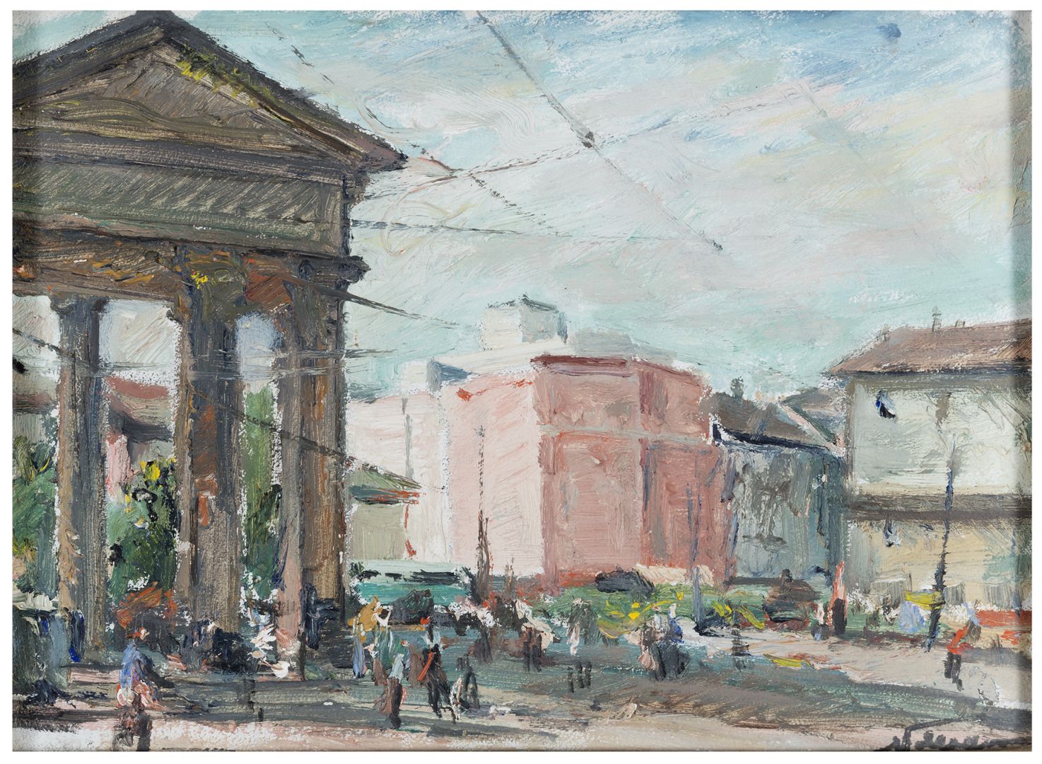 EUGENIO POLESELLO Pordenone 1895 - 1983 Porta Ticinese 1945 Olio su tavoletta...