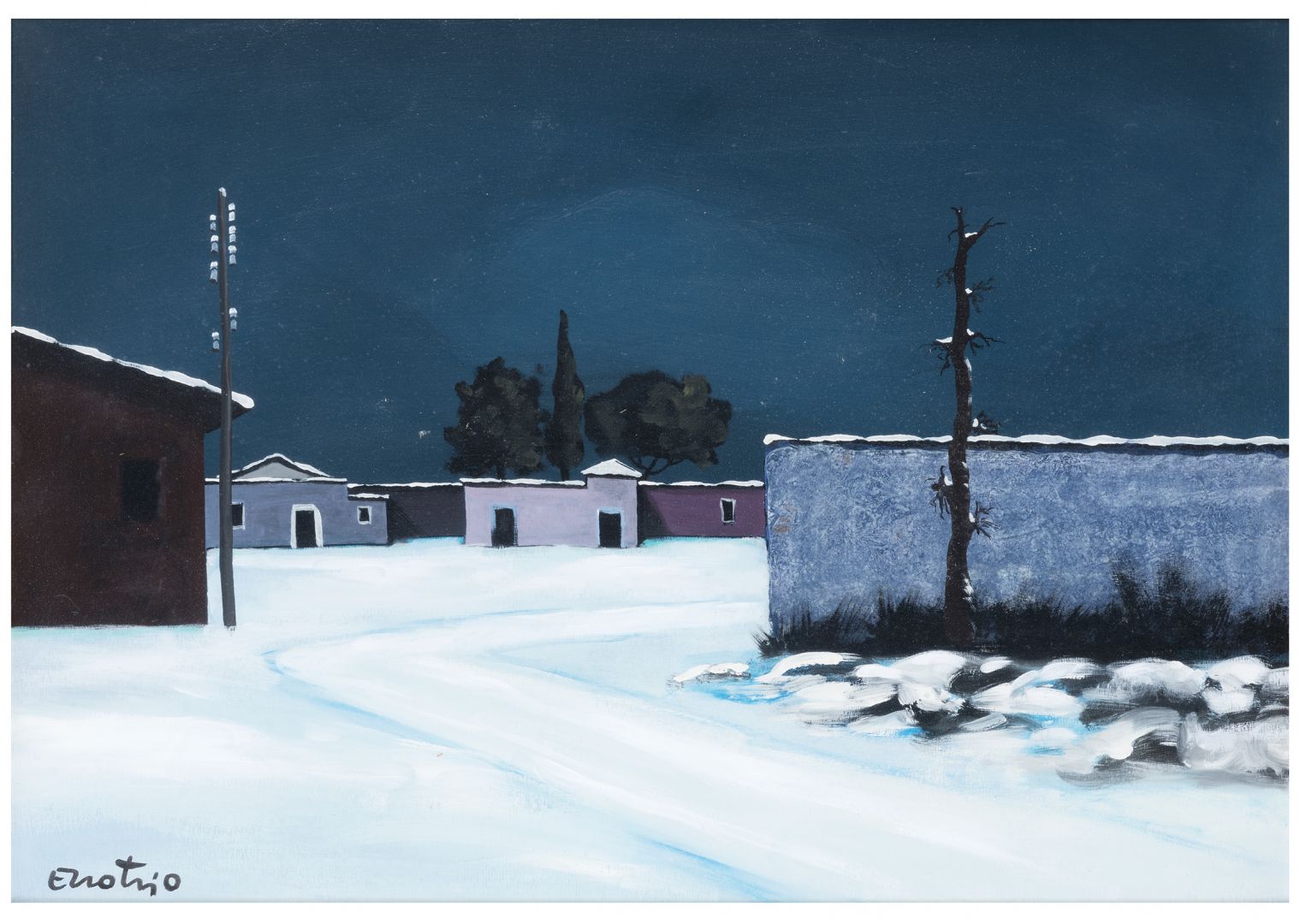 ENOTRIO Buenos Aires 1920 - Pizzo 1989 Nevicata in Calabria Olio su tavola cm...